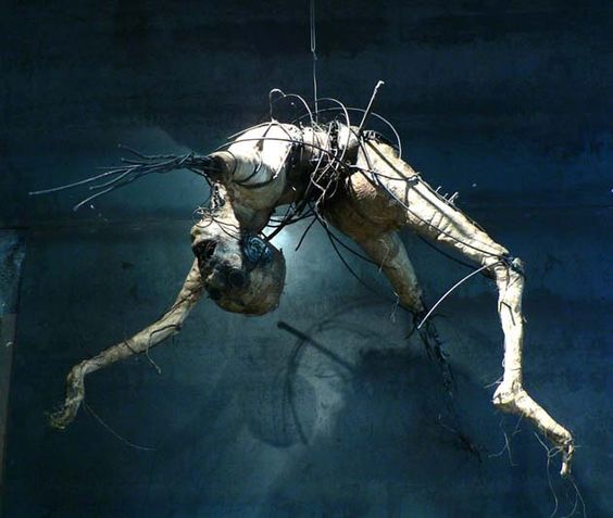 La primera impresión que tuve al ver su obra fue como si cadáveres apergaminados, que en su pasado fueron torturados por la inquisición, se hubieran puesto en movimiento llevándose enganchados al cuerpo trozos de sus máquinas de tortura.